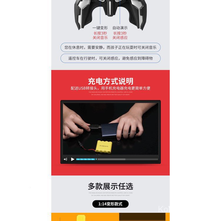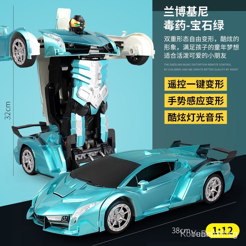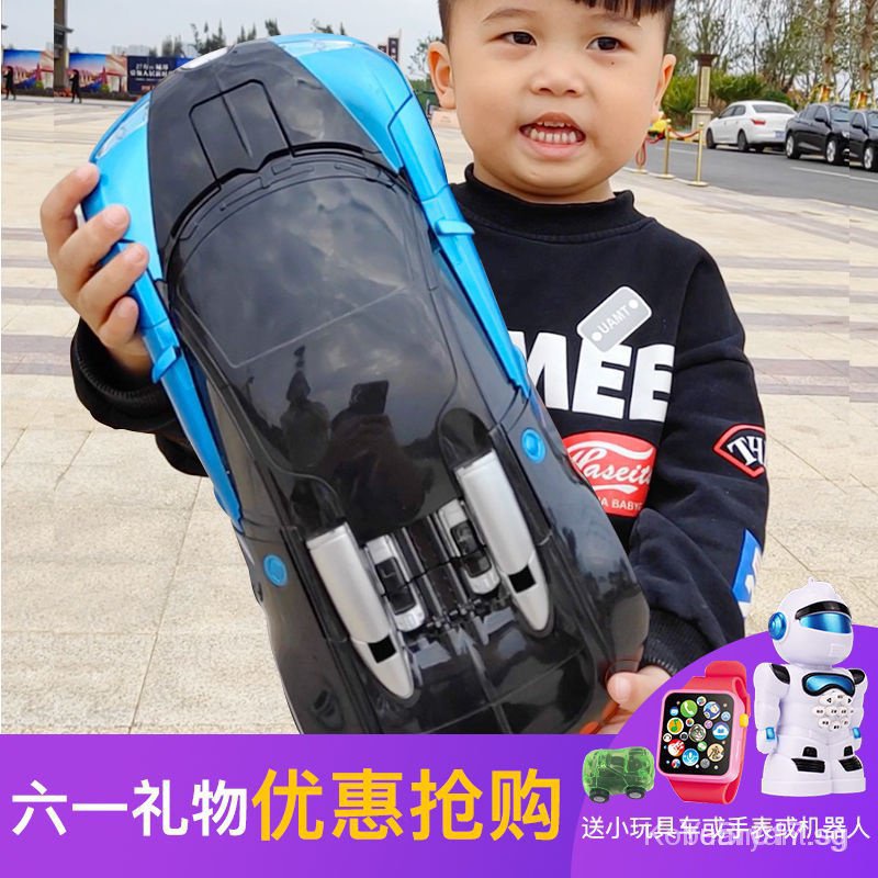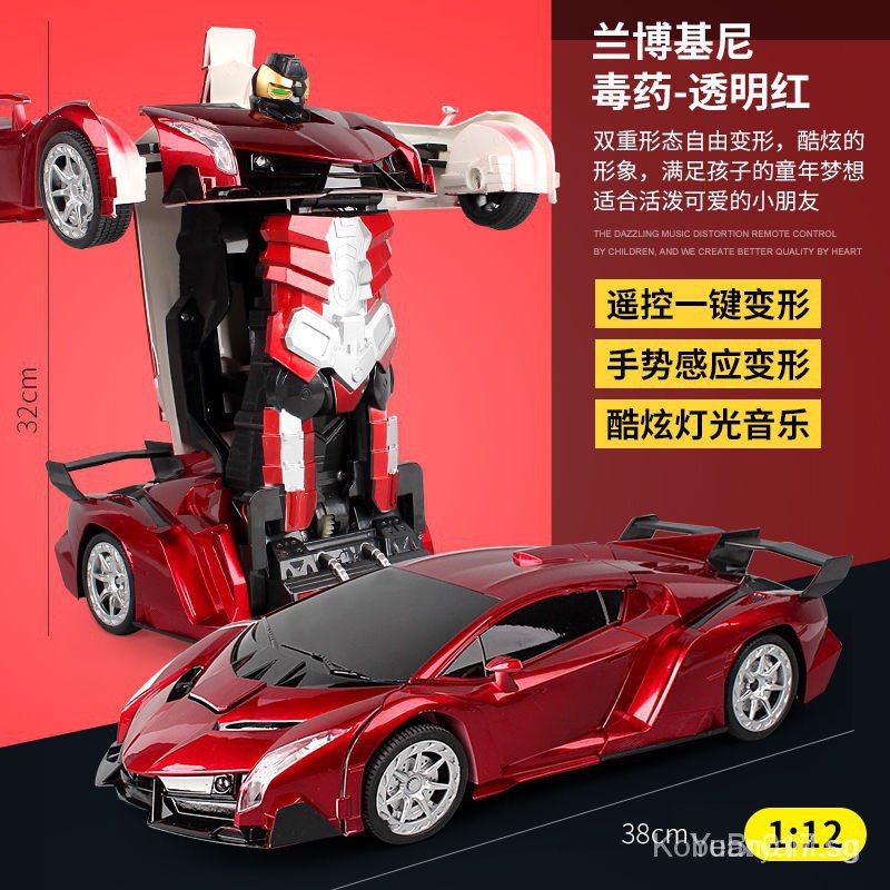 [kline]One-Click Transformer Remote Control Car Rechargeable Toy Car Bumblebee Police Car Children Toy Car-Transformation Car Robot Models Deformation Toys