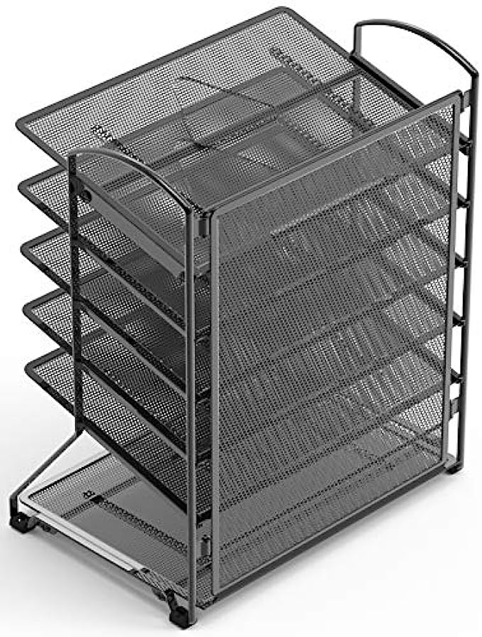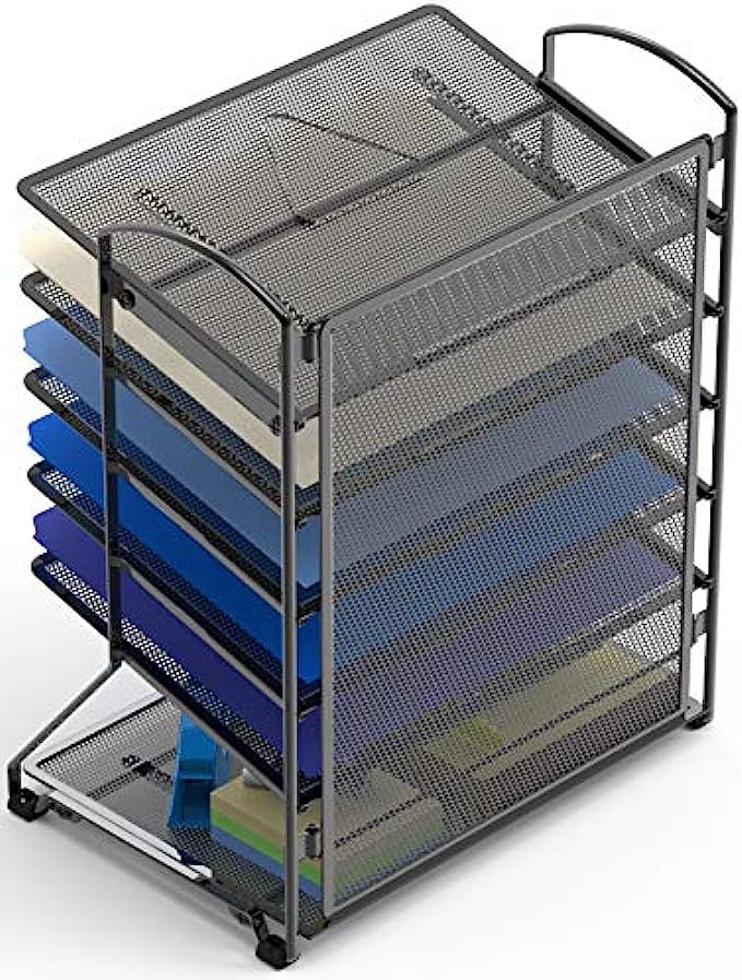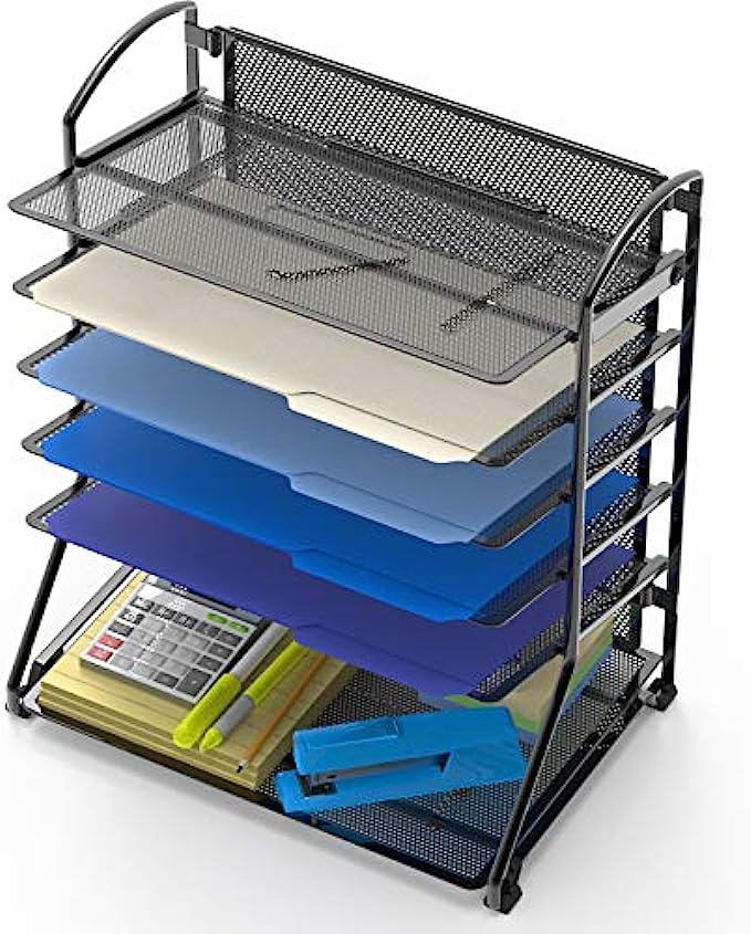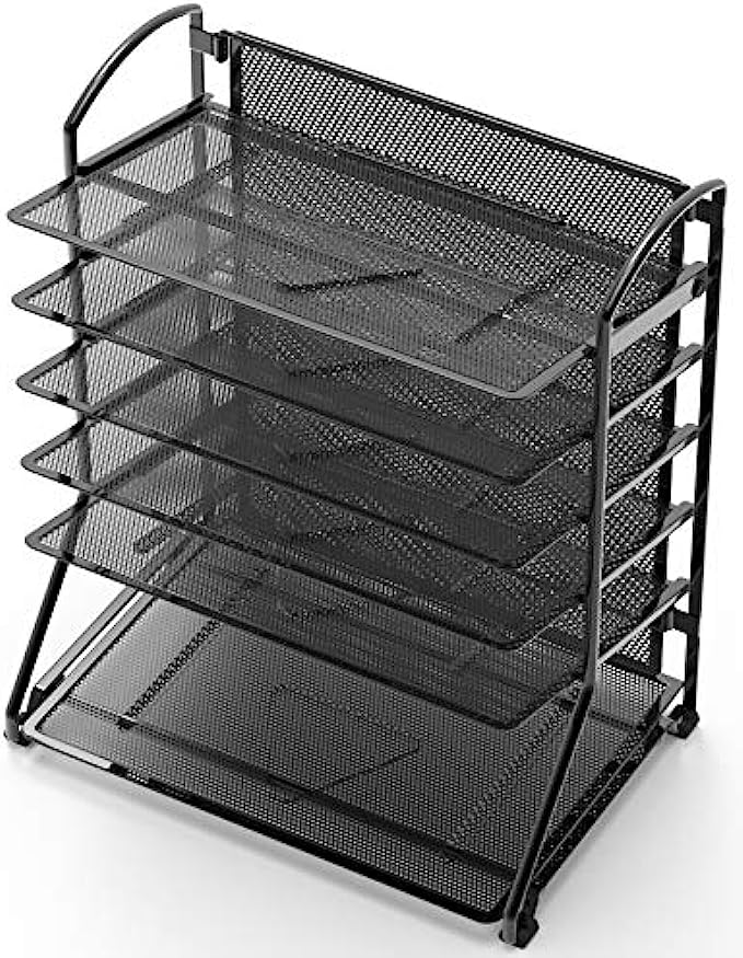• Top 5 tilted trays for easy accessing documents, the very bottom flat tray is great for stationary, desk accessories