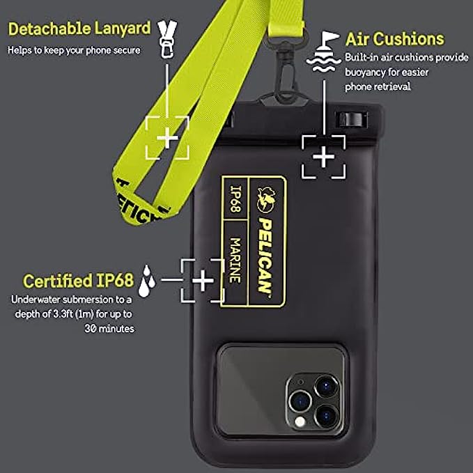 • ✅ HD Side Design & Sensitive Touch: The Pelican (Marine Series) waterproof cell phone pouch’s innovative design on the side of the case allows users to easily access the phone’s side buttons. High-quality soft TPU material exclusively made for delicate touch and response, softer than PVC.