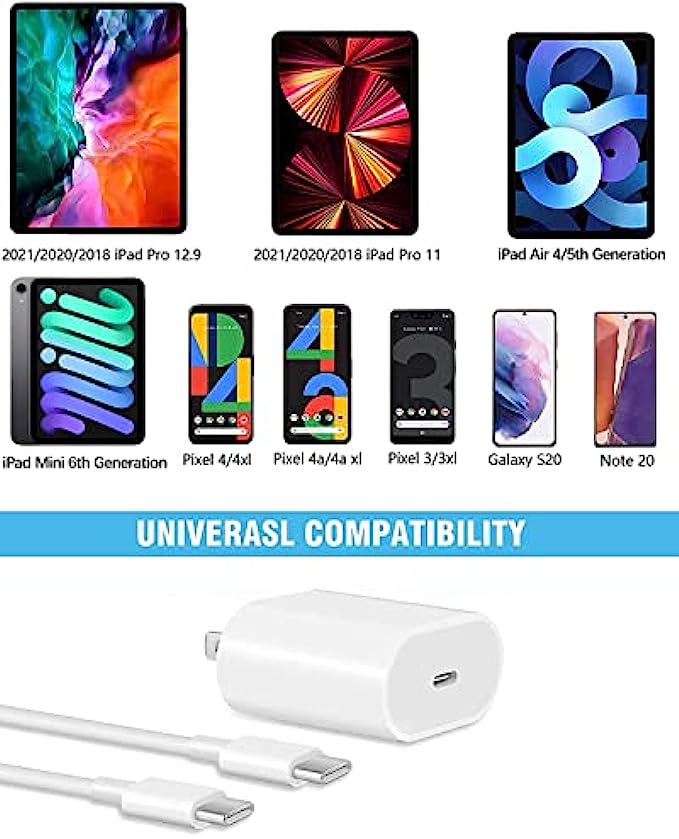 • Support iPad Models - Fast charge for 2021/2020/2018 iPad Pro 12.9 Gen 5/4/3, iPad Pro 11 Gen 3/2/1, New iPad Air 5th, iPad Air 4th Generation, iPad Mini 6th Generation, also compatible with Google Pixel, Samsung Galaxy and more Type-C phones and tablets.(Not for Other iPad Models)