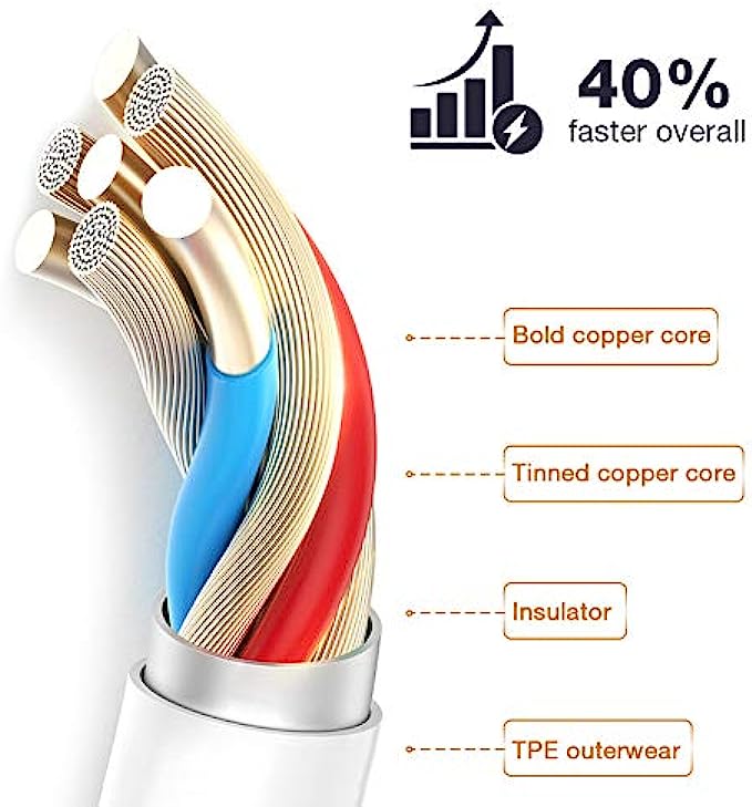 • Quality Copper Wire: Connects to your iPhone, iPad with Connector charges/syncs by connecting the USB connector into wall charger or computer. Enjoy charge times up faster than than most standard cables
