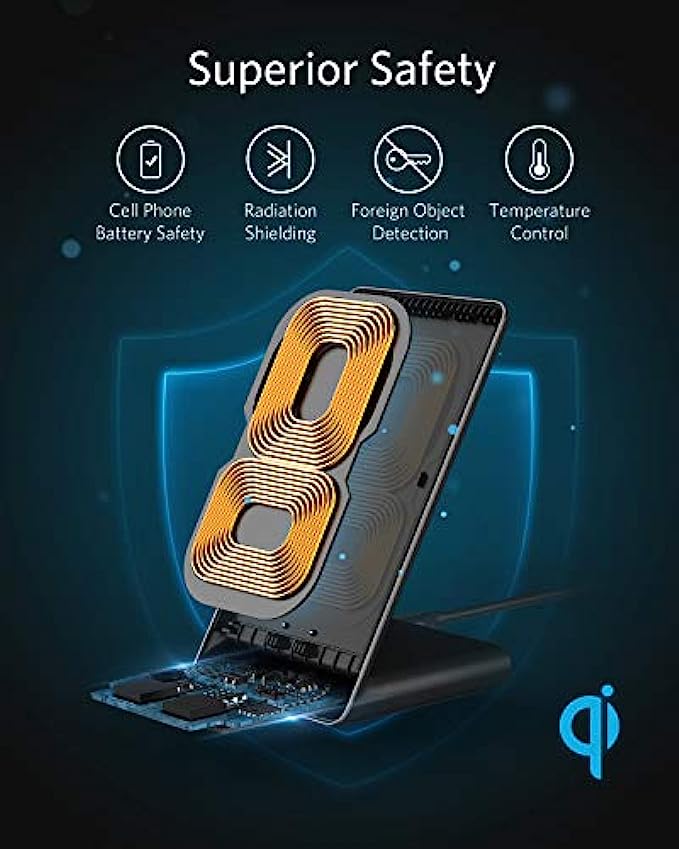 Anker Wireless Charger, 313 Wireless Charger (Stand), Qi-Certified for iPhone 12, 12 Pro Max, SE, 11, 11 Pro, 11 Pro Max, XR, XS Max, 10W Fast-Charging Galaxy S20, S10 (No AC Adapter)
