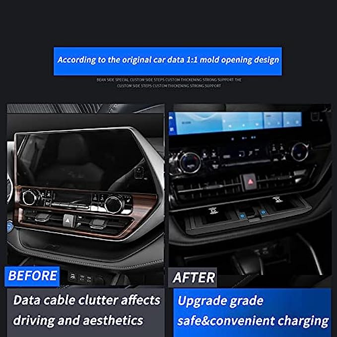 • 【Special Car Design】 Molded by the original car data, accurately fit the car body, it is fit for Toyota Highlander 2022 2021 2020 compatiable with almost smartphones with wireless charging function.
