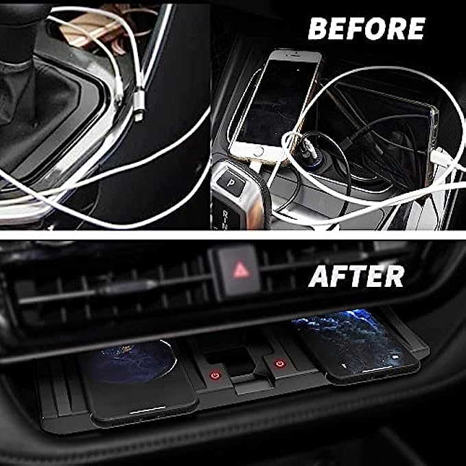 • 【Product Features】15w wireless fast charger,charging faster &safer, effective charging, wireless charging induction distance ≤6MM, say goodbye to the wiring harness; With dual wireless charging panels, it supports charging two mobile phones at the same time without affecting each other.