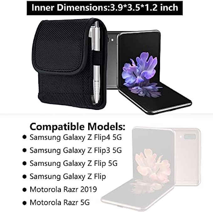 • 【Compatible】 Durable Nylon holster fits Samsung Galaxy Z Flip/Z Flip 5G/Z Flip 3 5G/Z Flip 4 5G, Motorola Razr 2019/Razr 5G.