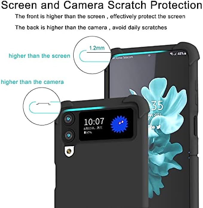 • 【Full-Body Protection】Raised lips around camera and screen prevent your Samsung Galaxy Z Flip 4 from scratches or wear. Built-in airbags at 4 corners protect the edge of your phone, effectively absorbs impacts.