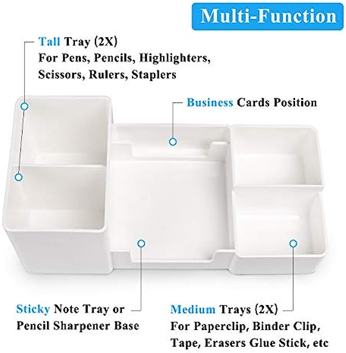 • ★ GREAT OFFICE ASSISTANT - Our office plastic desk organizer with divided 6 compartments that will organize pens, pencils, rules, marker, clips, scissors, sticky notes, name cards and other office accessories separately;