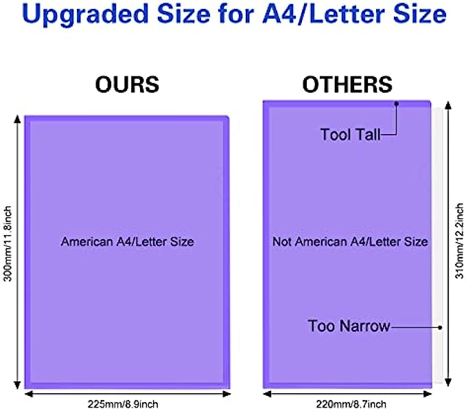 • ❤Upgraded Size: 11.8 in x 8.9 in (300 x 225MM) is upgraded size, more suitable for US A4/ Letter Size. 22C(0.22 mm)thickness means thicker, with an increase of 57% compared to the standard thickness of 14C on the Amazon market, ultrasonic welding and stitching are not easy to crack