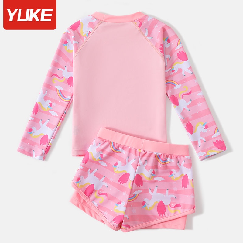 Kids Swimsuit 2023 Cartoon Cute Girls Long Sleeve Sun Protection Two Piece Swimsuit Student Swimmer Conservative Swimwear Children Soft and Comfortable Swimming Suit