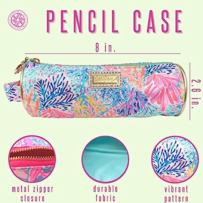 Lilly Pulitzer Cute Pencil Case, Colorful Zipper Pouch for School or Office Supplies, Small Travel Bag with Carrying Handle, Splashdance