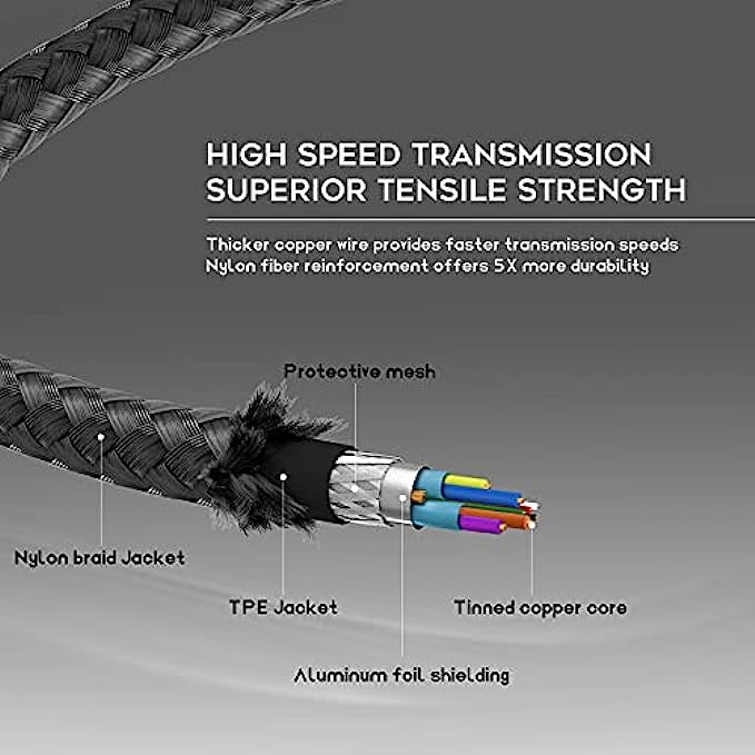 • 【Ultra-durable Material】DESTEK link cable is made of tinned copper and covered with high-quality nylon fiber, it has a diameter of 0.27inch, which gives it good flexibility, lightweight, resistant to stretching and abrasion, not tangle easily stored.