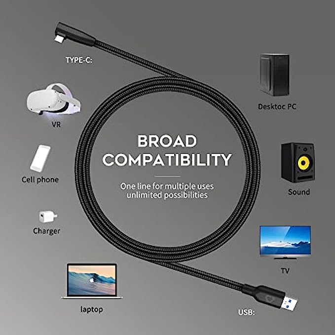 • 【16FT Extended Length and 90-Degree Right Angle Design】16ft link cable long enough in the room, allow you to move freely without restriction when playing games. Featuring a 90° right angle prevents disconnection and is more stable, giving you an immersive VR gaming experience.