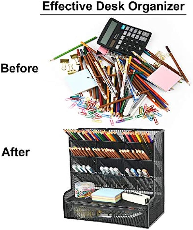 • ✏️【SPACE SAVING】: This mesh organizer is convenient for storing and sorting small items such as pencils, markers, glasses and so on, helping you to save space. Make your desk look more neatly and cleanly.