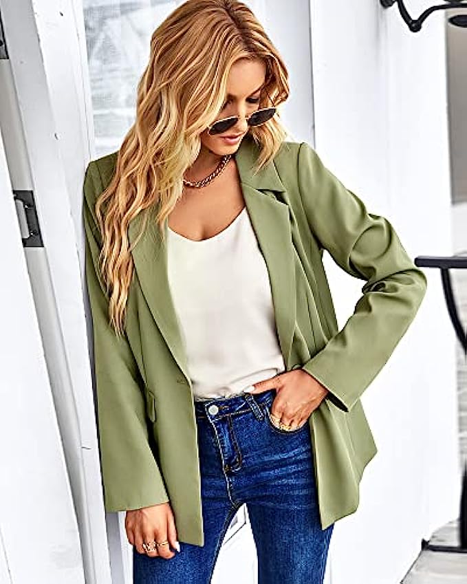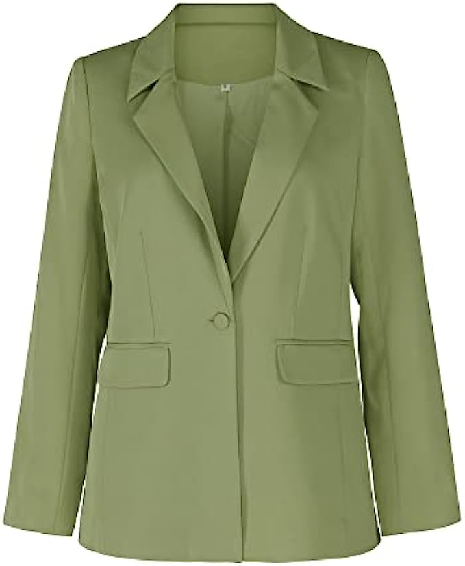 • Classic Design: The casual blazer comes with one button, long sleeves and two functional flap pockets. This business blazer goes with four color, black blazer/ white blazer/ apricot blazer/ green blazer/khaki blazer, This is one of those open front blazer that is so flattering you want one of every color