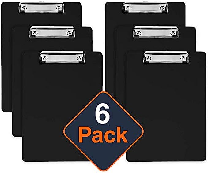 Plastic Clipboards (Set of 6) Multi Pack Clipboard (Black) Strong 12.5 x 9 Inch | Holds 100 Sheets! Acrylic Clipboards with Low Profile Clip | Cute Clip Boards Board Clips