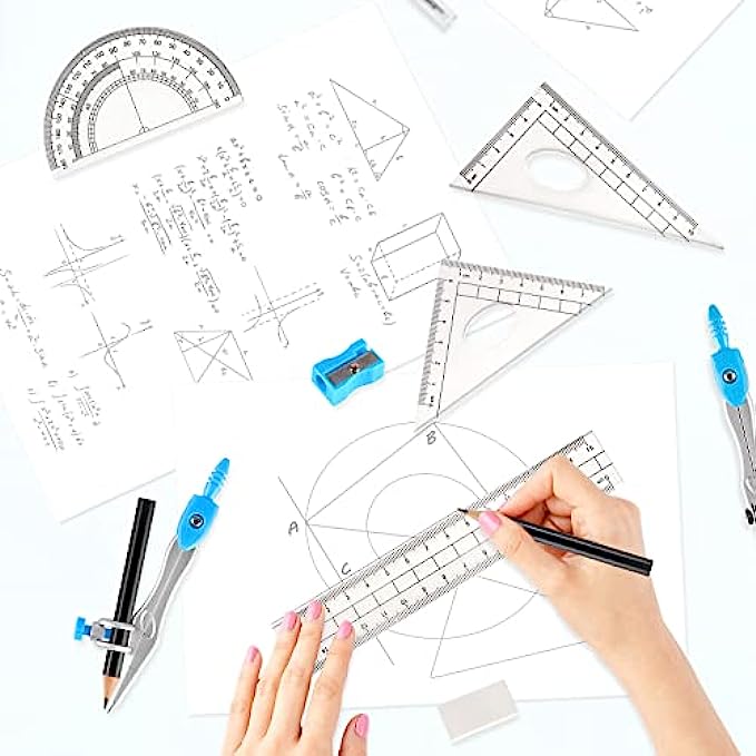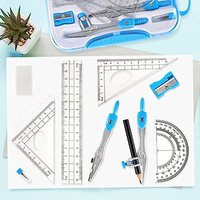 • Geometry set with a sturdy plastic case for protecting and storing tools in one place in a backpack or desk. Ruler set for easy carrying and storage for school.