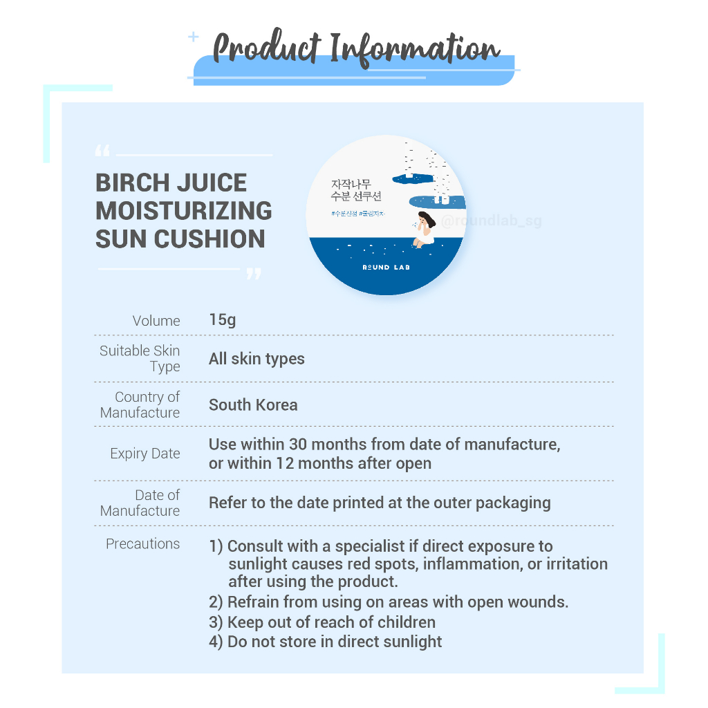 ROUND LAB Birch Juice Moisturizing Sun Cushion (15g)