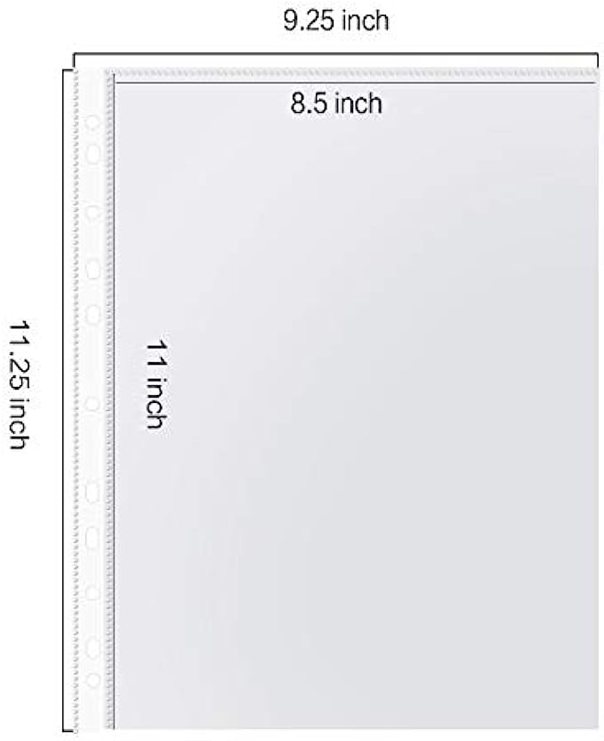 • 500 PACK SHEET PROTECTORS: PANDRI polypropylene sheet protectors are perfect for standard letter sized paper, our top loading 9.25" x 11.25" sheet protectors with 11 holes fit 8.5 x 11 paper and will keep your standard letter sized papers safe in most binders or folders. Our safe swing ring sheet protectors for 3 ring binders can hold up to 10-20 sheets depending on thickness.