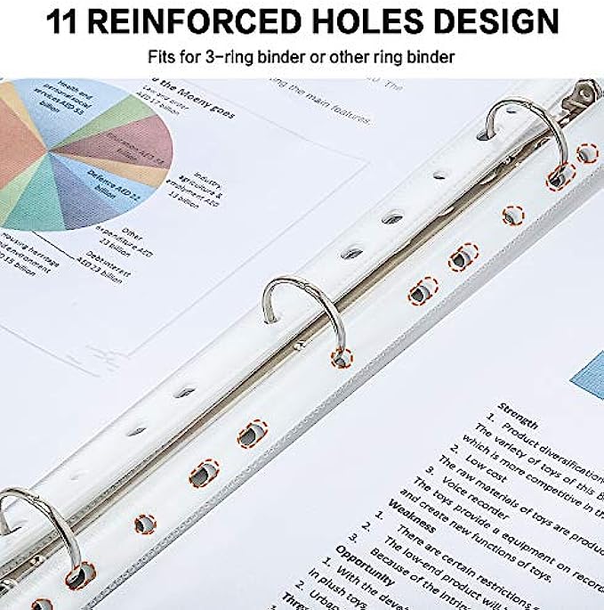 • TOP LOADING DESIGN: The wide top-loaded binder sleeves opening makes inserting easy, and the various pre-punched holes allow our clear binder sleeves to be used with file, photo, or recipe binders.