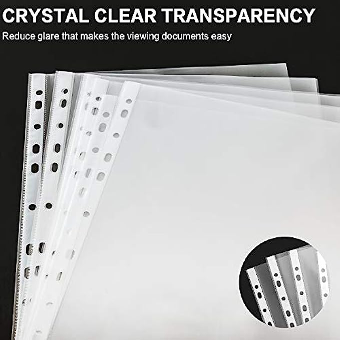 • CRYSTAL CLEAR TRANSPARENCY: Crystal clear finish provides reduced glare that makes the viewing archiving documents, copy papers, photo papers, records, recipes, reference materials, business documents, and photographs super easy.