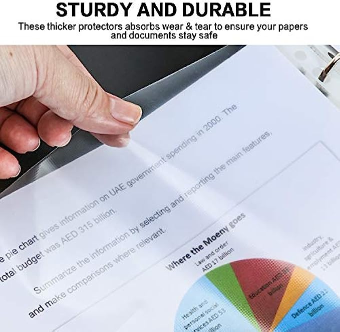 • STURDY AND DURABLE: Our ultra lightweight sheet protectors that are enough thick to ensure your papers and documents stay safe for years to come. These protectors absorbs wear & tear, provides great performance, durability and frequent daily use at home, school or office for any documents you want to keep safe or that are frequently used, Archive safe with our PVC Free and Acid free design.