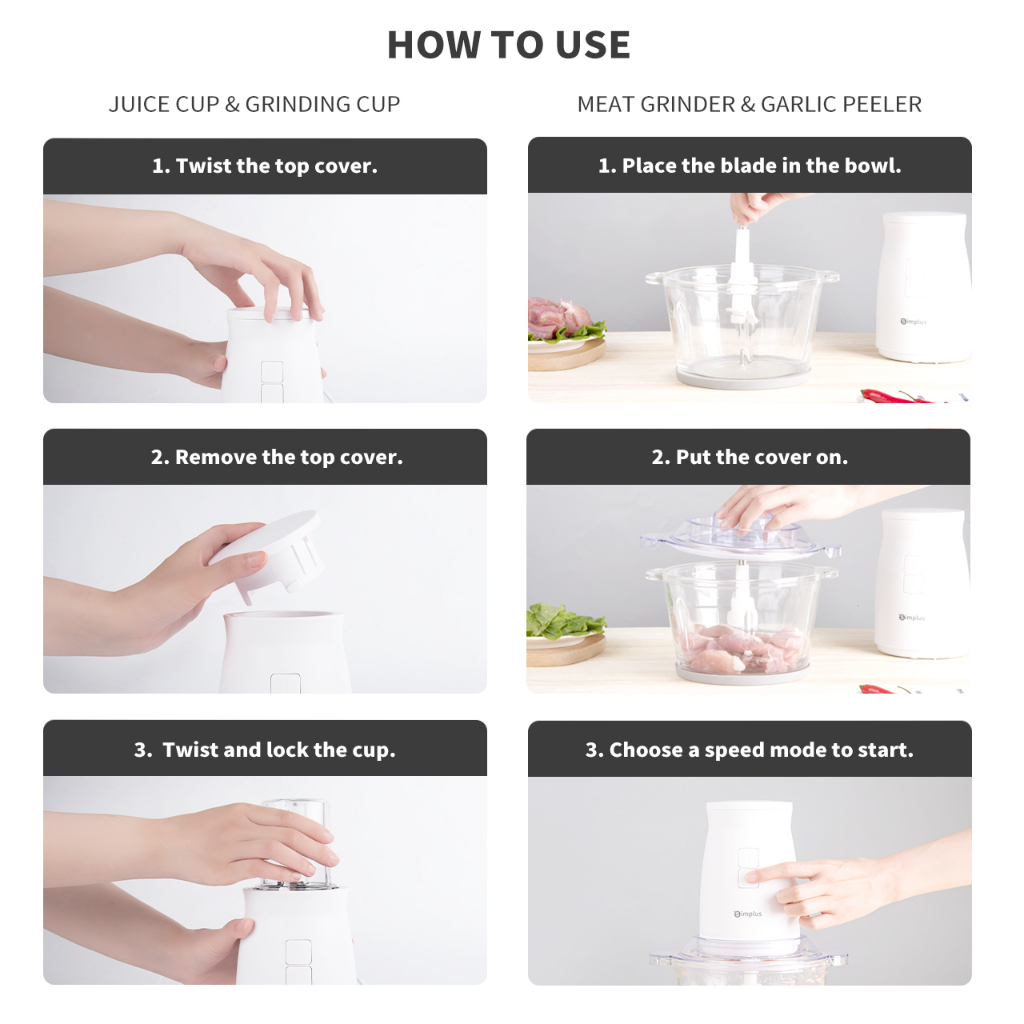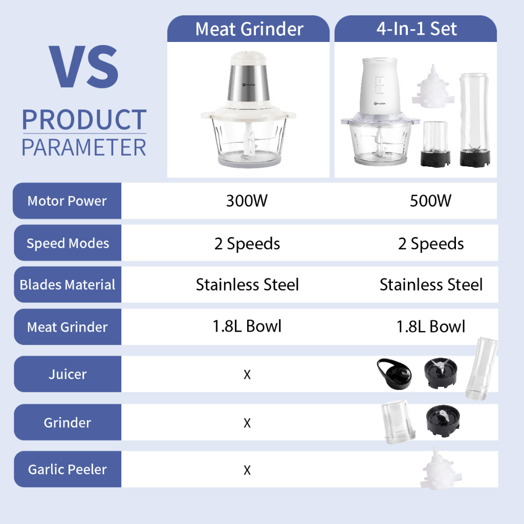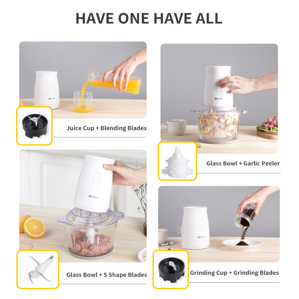 Simplus Meat Grinder 1.8L Glass Bowl Food Chopper Processor Mixer Mincer 4 Blades Stainless steel