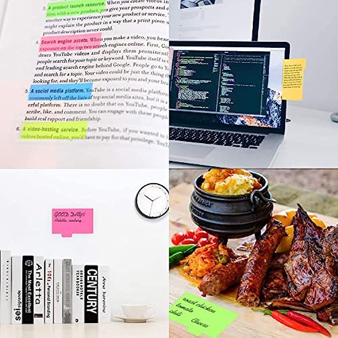• 【Adhesives & Remove】The stick notes tabs are sticky, perfectly pasted on paper, walls, displays, bulletin boards,Removable you can take them off without ripping the paper.