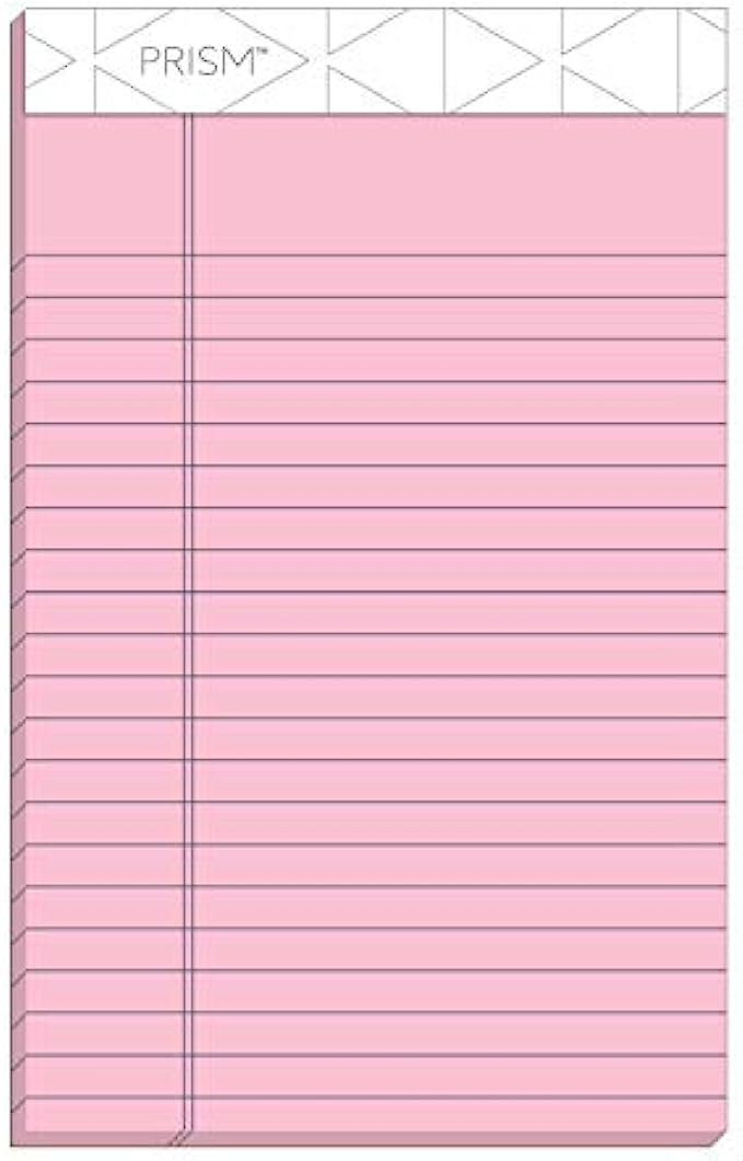 TOPS Prism+ Writing Pads, 5x 8, Perforated, Jr. Legal Ruled, Narrow 1/4 Spacing, Assorted Colors, 2 Each: Pink, Orchid, Blue, 50 Sheets, 6 Pack (63016)
