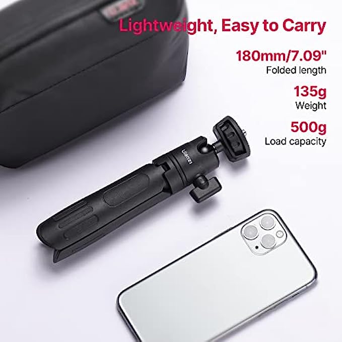 • Strong Stability: Ulanzi M12 mini tripod has non-slip rubber pads on the feet, which can be stabilized on the ground or on the table. The load-bearing capacity is 500g after expansion. In addition, the handle of the tripod also adopts a non-slip design