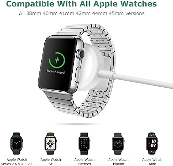 • 【Universal Compatibility】This watch charger is designed to ensure perfect suitable for all Series Watch SE/7/6/5/4/3/2/1, including the 38 mm 40 mm 41 mm 42 mm 44 mm 45 mm Version.