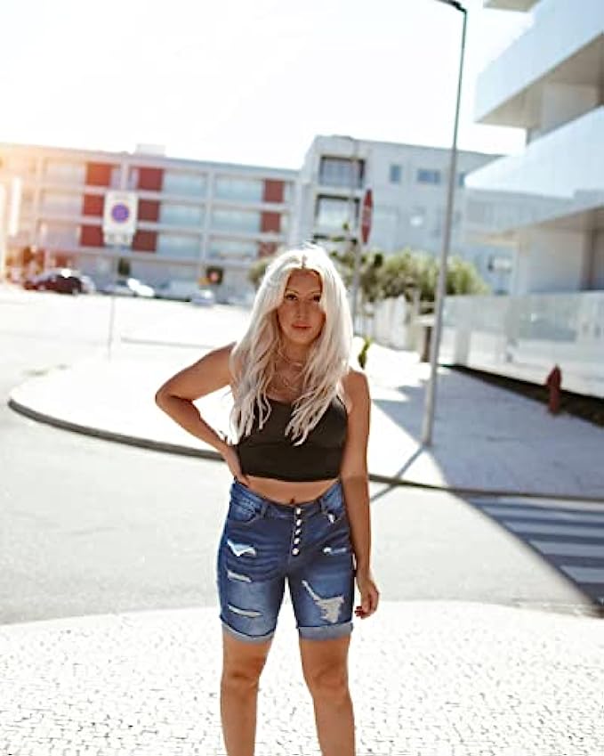 • Women capri bermuda short, made of durable high quality denim fabric, providing all around ease & roominess, never too tight or restrictive.