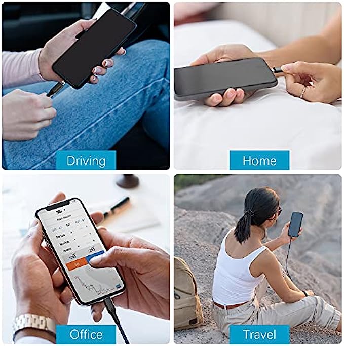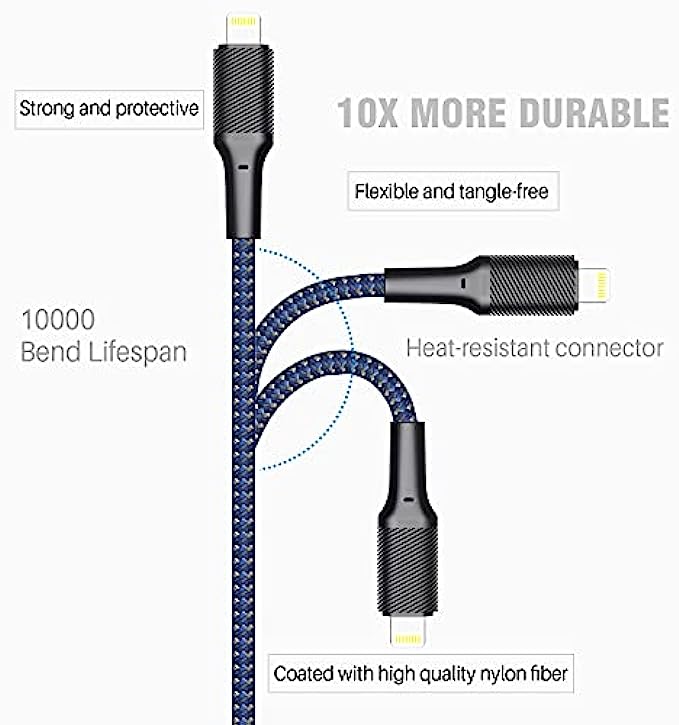 • Nylon Braided iPhone Charger Cable :IPhone charging cable with reinforced joint design that have passed 15,000+ times bending tests for extra protection and durability.braided nylon insulation and precisely layer-welded connectors,which make cable more durable and sturdier than normal iPhone charger cables but also flexible and tangle-free. Withstand a variety of everyday connection needs and long-term use