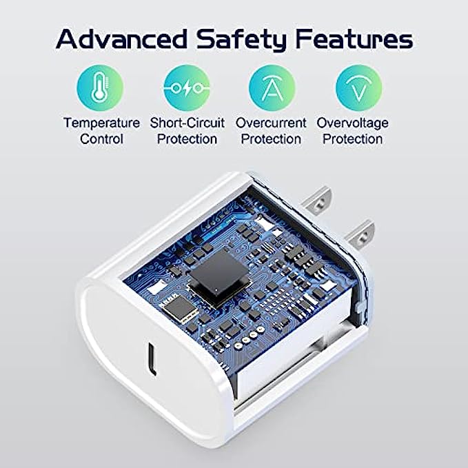• Universal Compatibility: 20W PD adapter wall plug to fast charge for iPhone 12/12Pro/12 Pro Max/12 Mini/11/11 Pro/11 Pro Max/XS Max/XS/X/XR/8 Plus/8 , iPad Pro/ iPad Air/ iPad, AirPods Pro, iPod touch. Standrad Charging Speed works with iPhone 7/7 Plus/6s/6s Plus/6/6 Plus/SE/5s/5/5c.