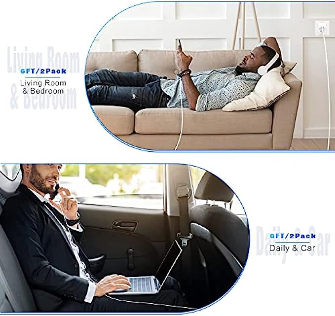 • Professional Seller Customer Service and After-sales Service: 2 Pack phone charger cable,Each pack has 6FT(200cm),Whether it’s working at home or traveling, it is an indispensable item in our lives,We have professional seller customer service and after-sales service. Please contact us in time if you have any questions at any time, and you will not suffer any loss!