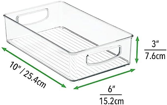 • PORTABLE: Bins feature easy-carry built-in handles to make it simple to transport goods from shelf to cabinet or desktop; Just grab and go; The perfect storage and organizing solution for modern living spaces; Open tops and clear construction make it easy to see what is inside and quickly grab what you need; Use these convenient storage bins to keep children's crafting items all in one place; Great for school supplies too; Perfect for home or commercial workspaces