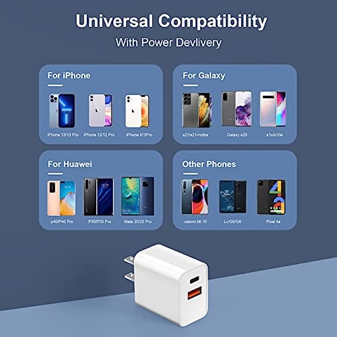 • 【Safe and Compact Design】 Built-in smart chip will prevent over-current,overcharging,overheating to protect your device safety.The USB C Charger small and exquisite,you can take everywhere.