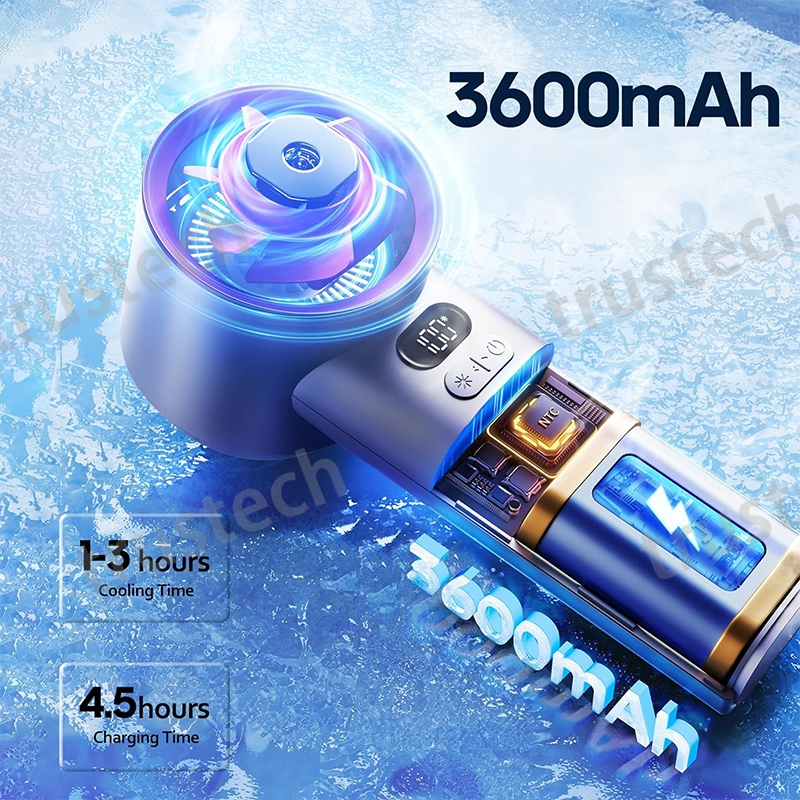 2024 NEW Portable Handheld Turbo Fan 100 Speeds Adjustable Jet Fan Air Conditioner Refrigeration Mini Fan LED Display 3600mAh Battery Cooling Fan for Travel Camping Outdoor