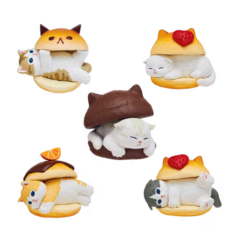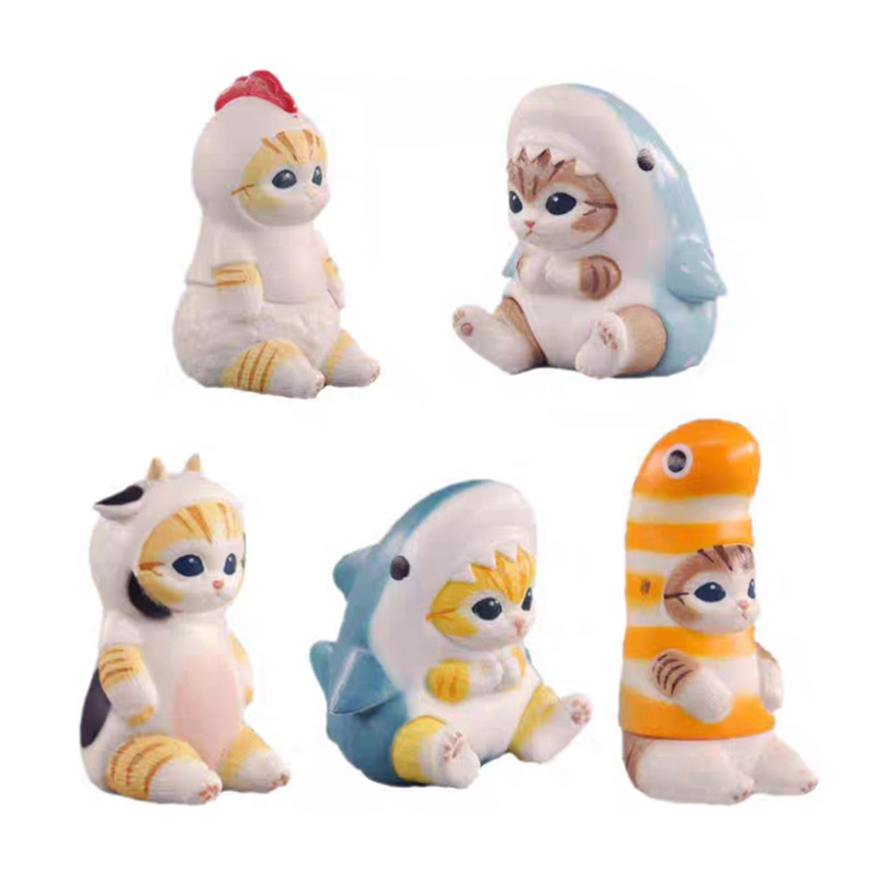 5Pcs/Set Mofusand Kawaii Tempura Fried Shrimp Shark Cat Action Figure Toy PVC Hamburg Cat Model Doll Figurines Home Decoration Fans Children Gifts