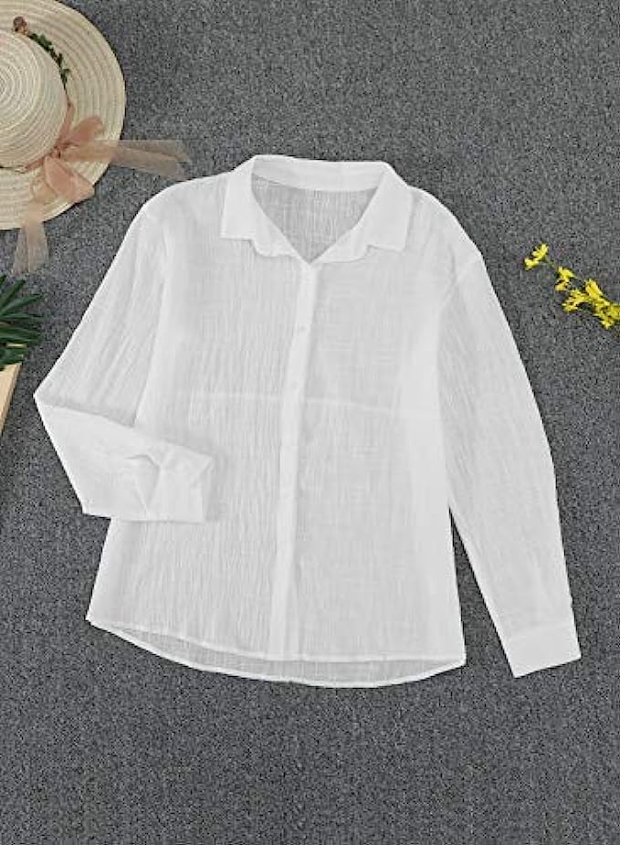 • Features: Long Sleeve, Collared V Neck, Roll-up Sleeves, Button Down, Solid Color Design