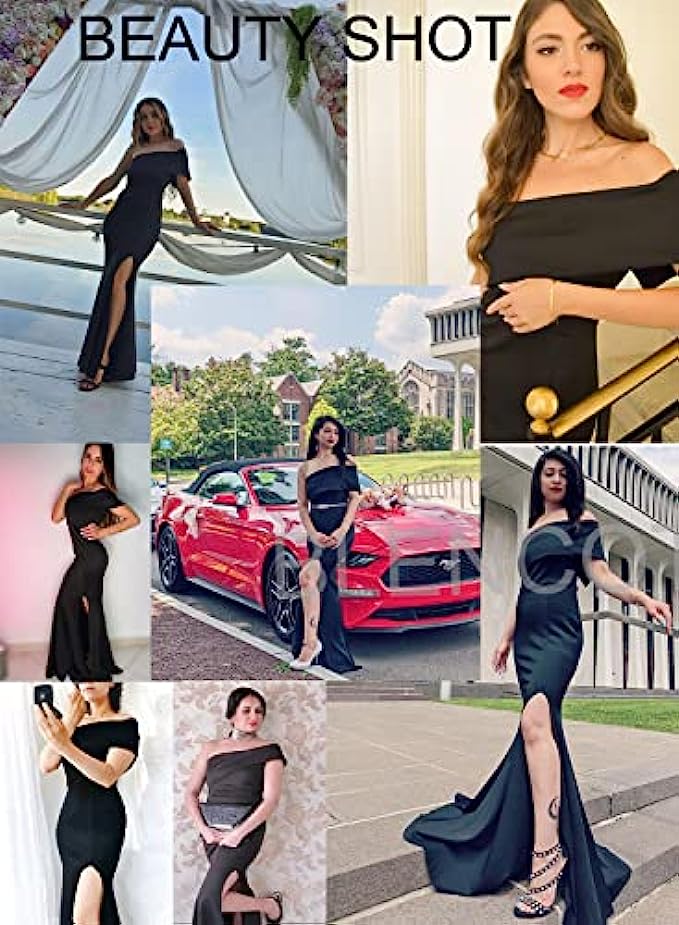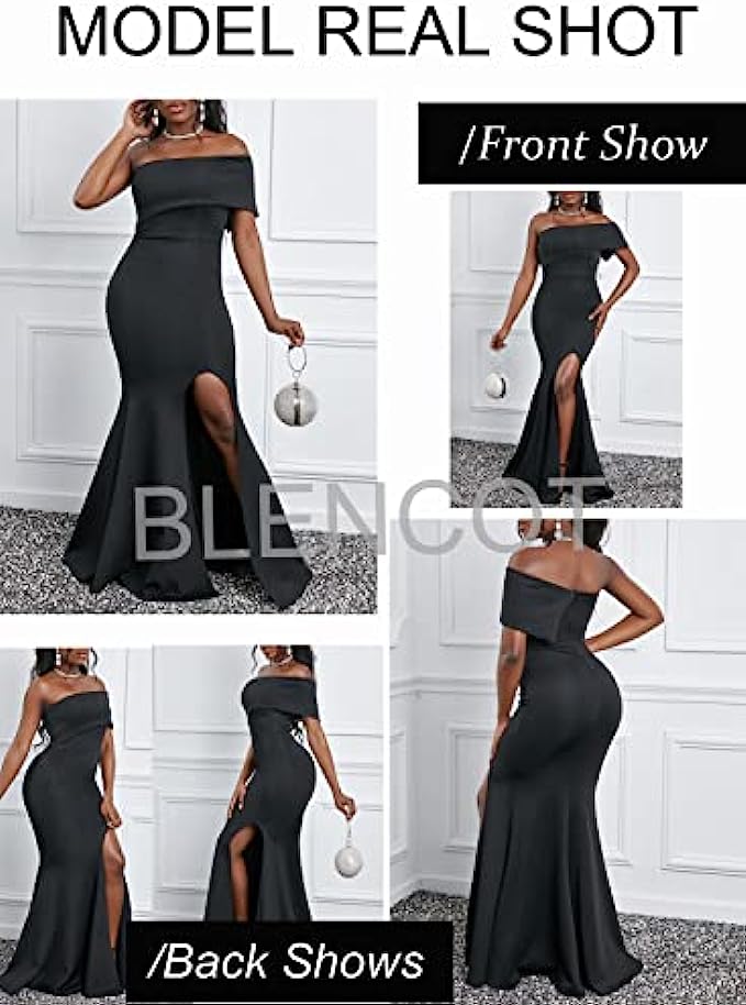 BLENCOT Womens Off The Shoulder Party Dresses One Sleeve Slit Maxi Bodycon Prom Dress Evening Cocktail Long Dress