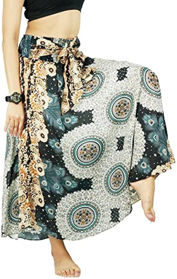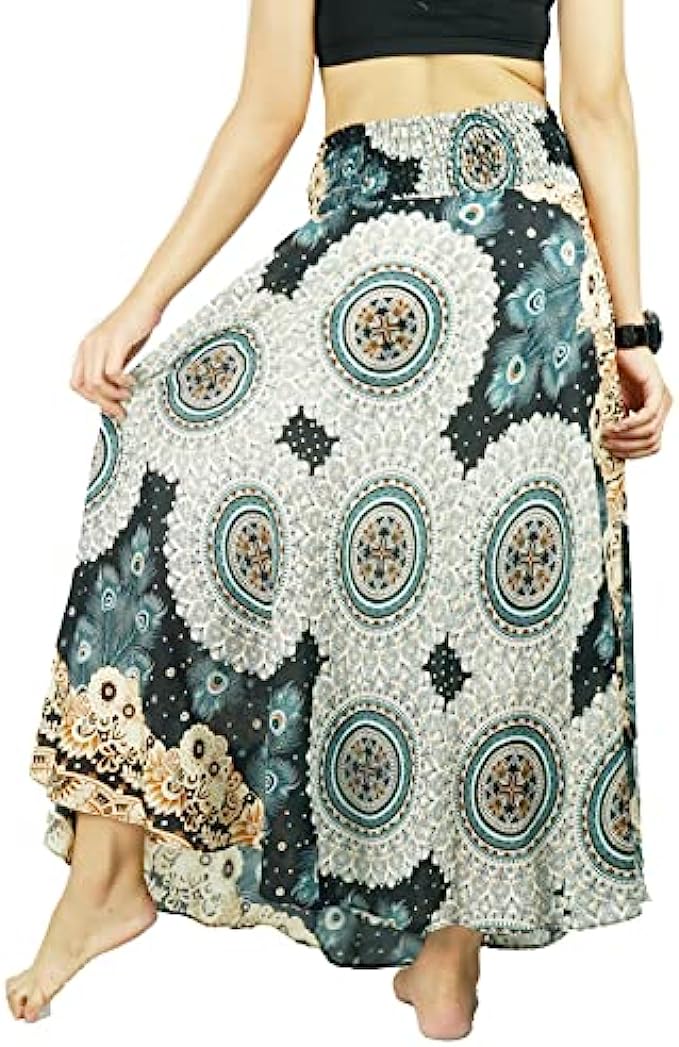 PumPumpZ Bohemian Gypsy Long Skirt for Women Hippie Boho Print Maxi Dress for Beach Dance Yoga. US Size 0-16