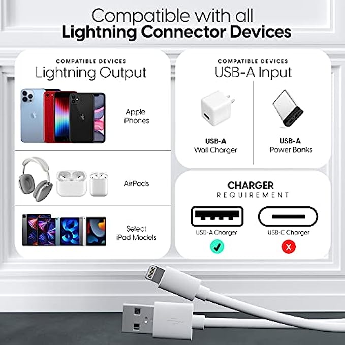 • MFI (Made for iPhone / iPad / iPod) Certified lightning cable is designed for Apple chargers and approved for Apple MFI Certification to ensure your devices are safe from overheating or short circuiting