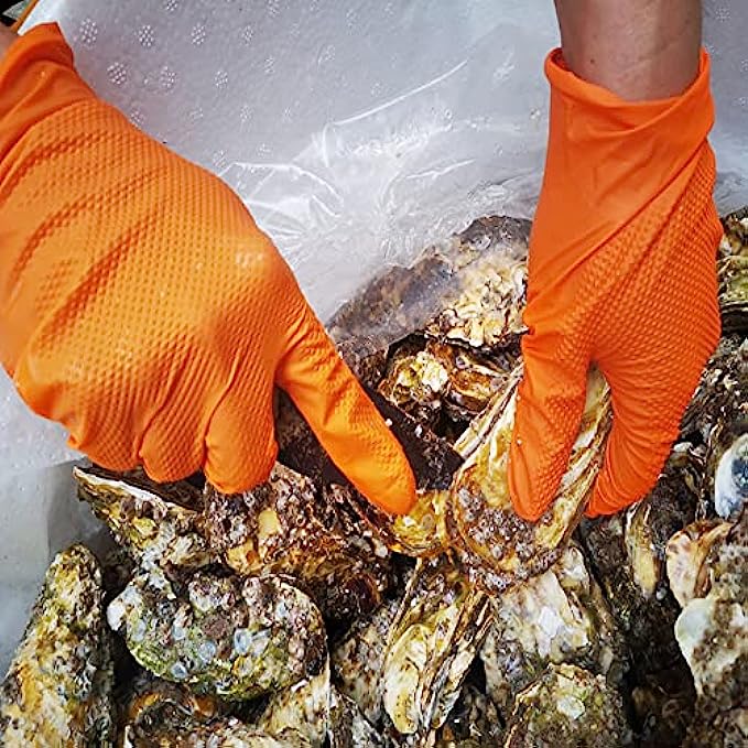 • HIGHLY VISIBLE: The bold orange color makes the nitrile gloves and your hand easily recognizable and alerting even in darker environments, greatly improving safety in heavy-duty tasks such as mechanic, automotive, construction, and manufacturing.