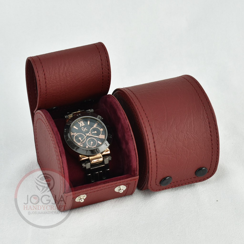 Material Quality:good quality Colour:this maroon colour is very red Well-built, good price, only problem is cushion is for watches 7 inches and above wrist size, ok for strap watches, may have to use other cushion for smaller wrist bracelet watches