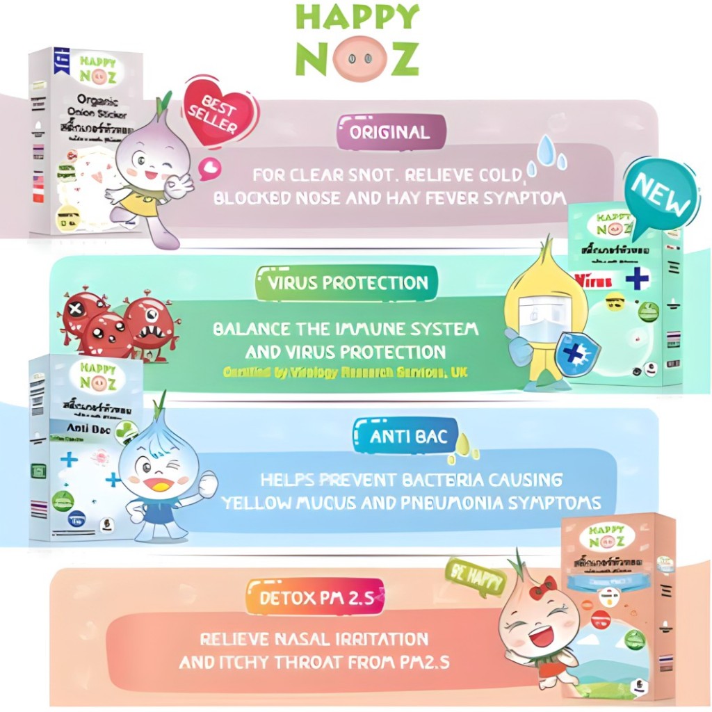 Happy Noz Organic Onion Patches 6pcs and Oil 10ml - Natural Allergy Congestion Relief