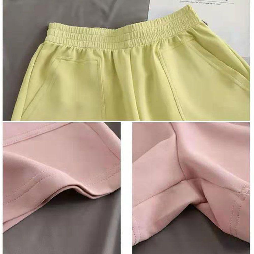 Material Quality:soft Colour:The yellow colour looks like highlighter yellow Soft, have pockets. Comfortable I am wearing large. Usually I am belong to the M/L size. The yellow colour looks like highlighter yellow