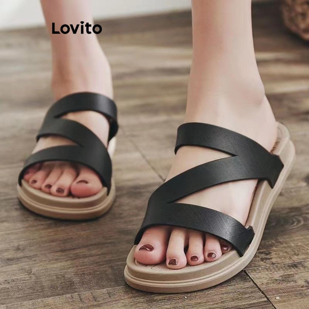 Lovito Casual Plain Tie Straw Flat Sandals for Women LFA31014