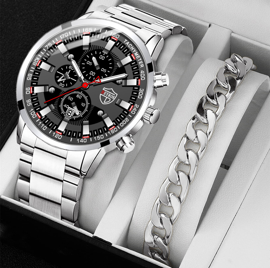 Men's Watch with Bracelet 2023 New Men's Watch Fashion Business Stainless Steel Quartz Watch