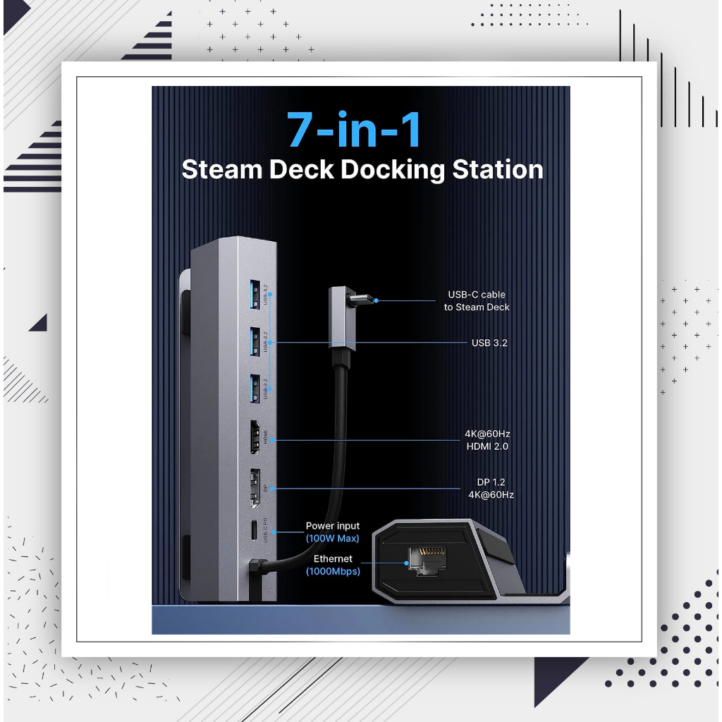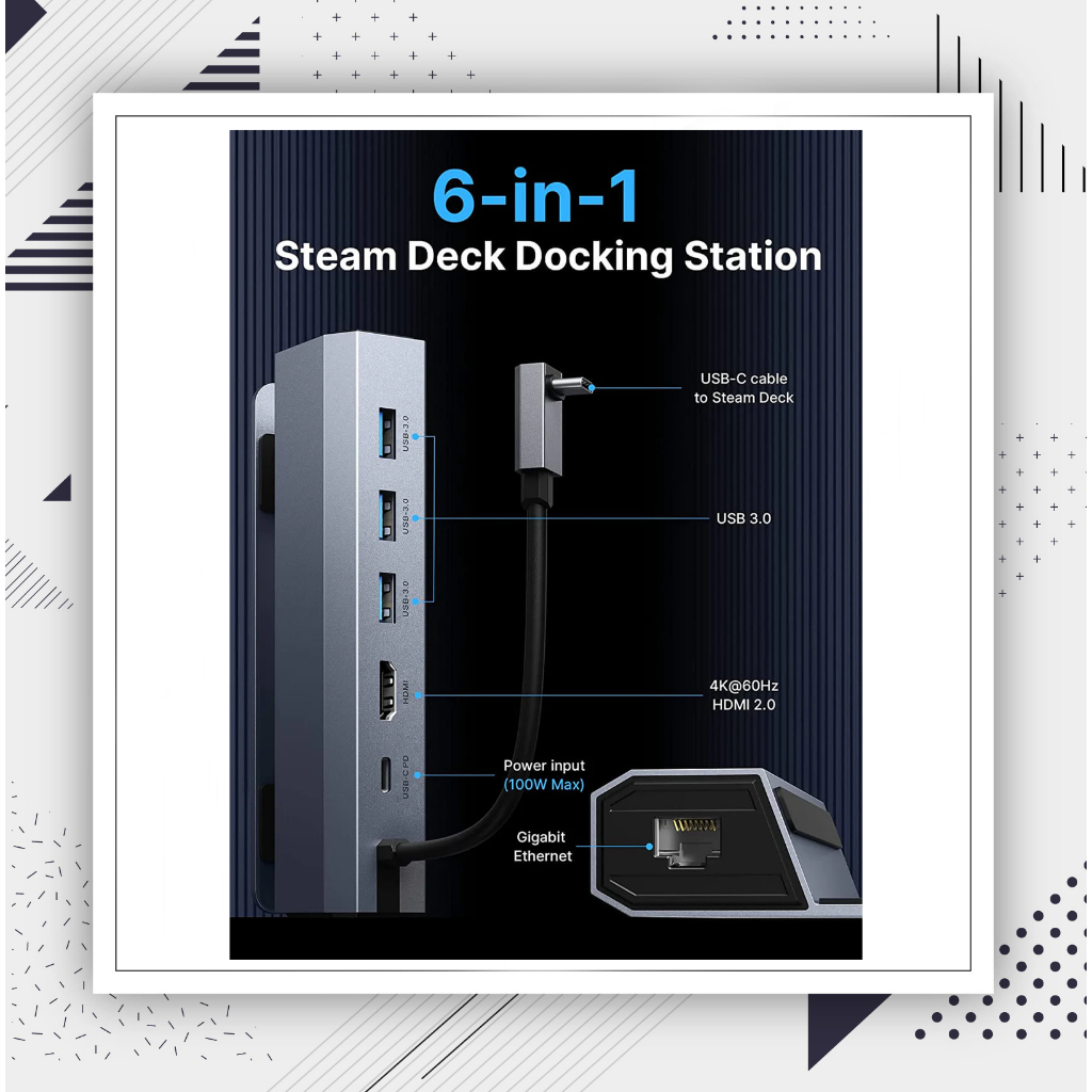 Steam Deck Dock 6-in-1 Steam Deck ROG Ally Docking Station with HDMI 2.0 4k@60Hz, Gigabit Ethernet, 3xUSB 3.0 and USB-C