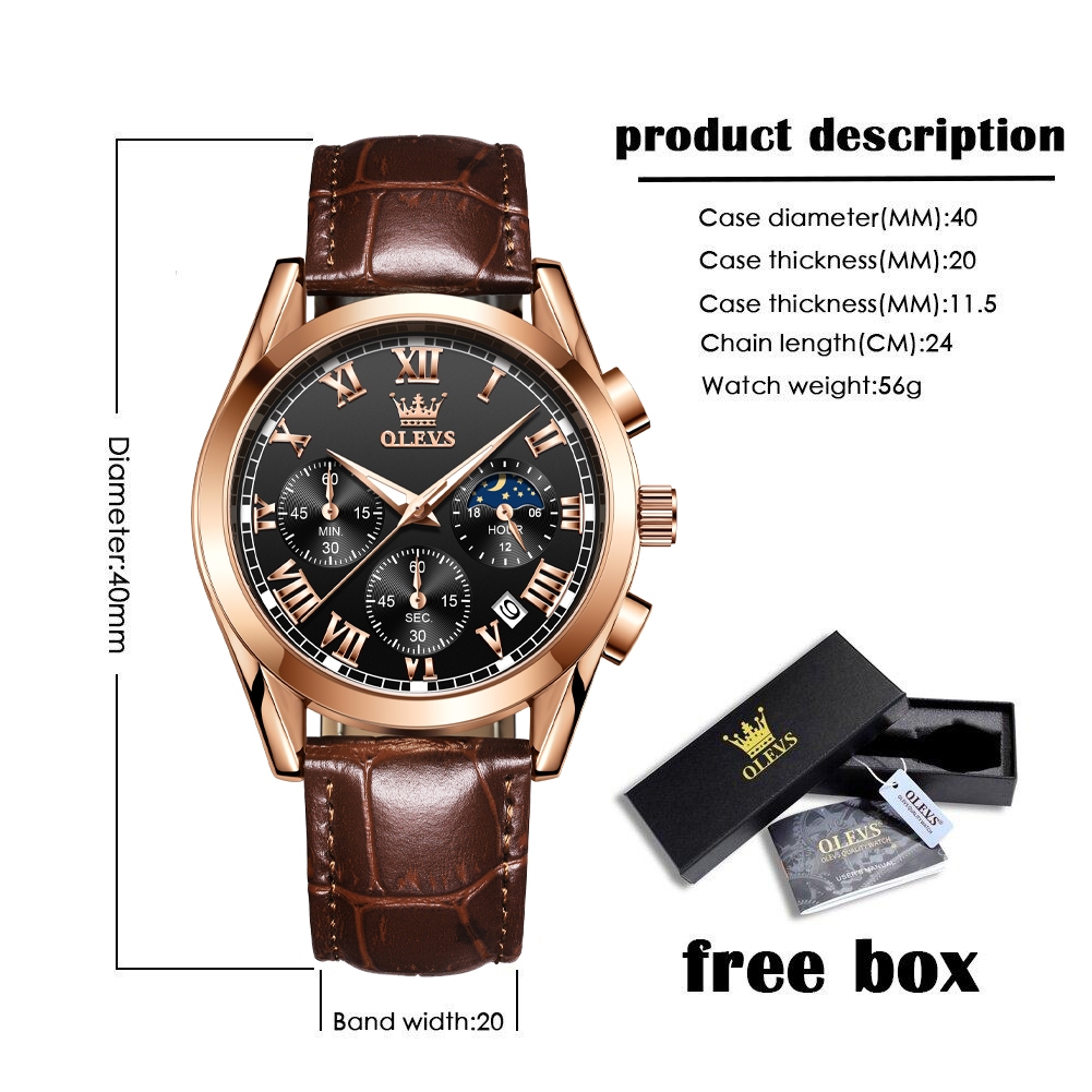 OLEVS Luxury Watch for Men Waterproof Original Quartz Multifunction Calendar Luminous Business 2871